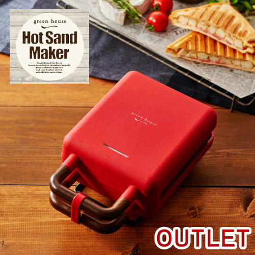 【アウトレット】【メーカー直販】レシピ付き ホットサンドメーカー【ホットサンド ワッフル 一面焼き 両面焼き フレンチトースト モッフル シングル 取り外し可 ギフト シンプル 家庭用 ホットクッカー 朝食 キッチン家電】GH-HOTSA レッド【グリーンハウス】